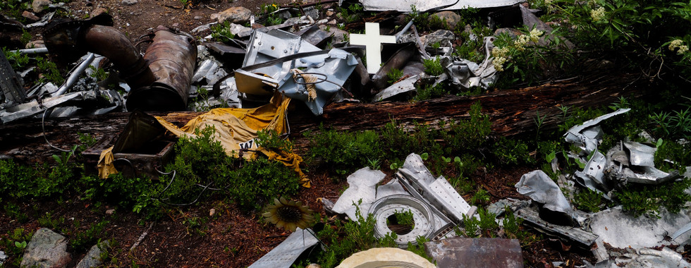 In my experience at this site, it was somber. I couldn't get over the vast amount of wreckage that sits at the top of this peak. This wreck happened in 1970, but nearly fifty-five years later, almost all of the debris remains on this mountain. I think that mostly has to do with the lack of public knowledge that the site exists, but also because it is a memorial site to a devastating tragedy. I often write about how I do not believe in coincidences, and when it started to pour down rain at the site while I was there taking photos, I took that as a sign that the sadness I was feeling was real. The surreal sensation that went through my body when the raindrops were hitting the metal plane pieces reminded me of how important it is to live life in the moment and to never take a second for granted, because unexpectedly, it can all be taken away.