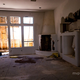So what remains: six mansion shells remain in 2023 when I visited the property as part of my Route 66 tour. Because the project was never completed, the houses were never completed either. The mansions left are all shells. There is hardly differences between each of the properties in the interior. They are all two-car garages, single story homes with what I would image was large kitchen spaces, fire places, multiple bedrooms, and a few baths. The road isn't paved around them either, it's basically just a random area in the desert far away from civilization where abandoned unfinished mansions sit.